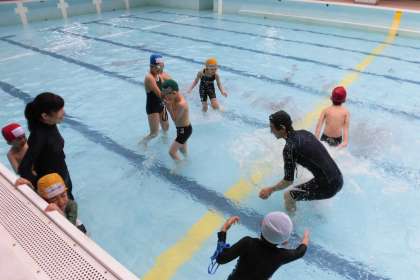 久しぶりで、最初は怖がる子もいましたが、水の中で遊んでいるうちに慣れてきて、楽しんで学習することができました。