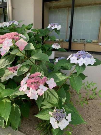 緑のプロムナードの紫陽花が色とりどりに咲いていてとてもきれいです。