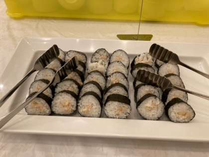 パエリアにコーンスープ、お寿司もあって、子どもたちは大歓声。
