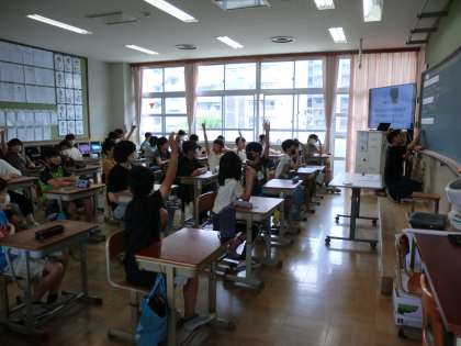 4年・5年・6年生は、情報モラルインストラクターの方と一緒に、情報モラルについて学びました。SNSの危険性やスマホとの付き合い方などについて考えながら、自分自身でもしっかり判断できるようになることが大切だということなどを学びました
