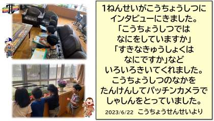 校長室だけではなく、「知りたい」気持ちいっぱいで、学校の中のいろいろな場所をパッチンカメラをもって探検しています。