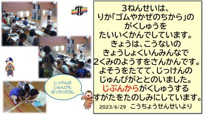 笑顔いっぱい楽しみながら実験をして、意見を交流する姿がとてもよかったです。