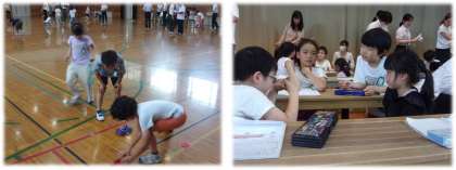 体育館での学習でとても暑い中、集中して学習をしていました。