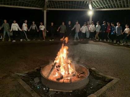 雨が降るかもしれないという予報があり、キャンプファイヤーを30分早く開始しました。