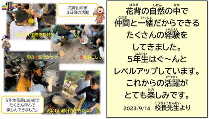 「探ろう つながろう 自分から」の2泊3日を過ごした5年生。友達や家族、山の家のみなさまに感謝をして、一回り成長することができたように思います。