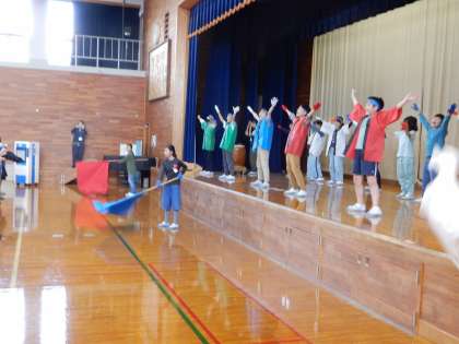 今日はにじプロ1「スポーツフェスティバル」の開会式を行いました。司会進行、開会宣言、スローガン発表、はじめの言葉と活躍をしました。また、ハピスマ委員会の子たちがみんなを応援したいと応援団を結成し、「フレーフレーみんな!」とエールを送ってくれました。委員会の子たちだけではなく、みんなが互いにエールを送る場面もあり、学校全体がつながる素敵な時間でした。