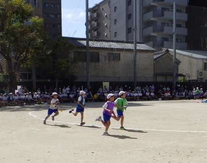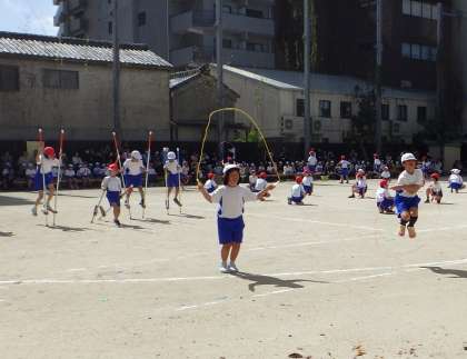 リレーはバトンパスなどの練習の成果を発揮すべく、チームのめあてにそって力強く走りました。リズムダンスは、グループで考えた振り付けや、自分のチャレンジする種目を見せる時間などで、いっぱい自分たちの成長をアピールしながら踊りました。