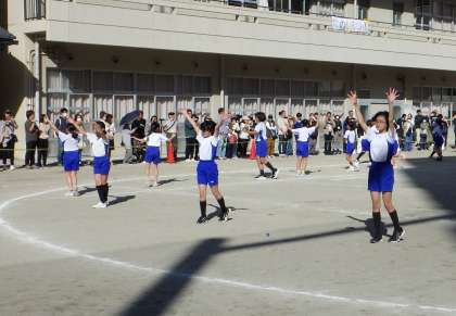 リレーは、チームでの作戦をしっかりたてながらバトンをつなぎ、パワー全開で走りました。表現「自然のい力〜空・海・大地〜」は、各々が自然の一部になりきって、自分なりの豊かな表現ができていました。まるでミュージカルを見ているかのような、堂々とした動きでした。一から子どもたちが話し合って創りあげた渾身の表現になりました。