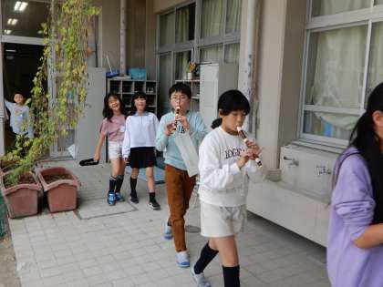 ハピスマ集会委員会の取組です。リコーダーを演奏しながら校内を行進しました。休み時間に登場した6年生の姿に、ほかの学年の子どもたちも「すごい!」「上手!」と言葉をかけてくれていました。にじプロでつながろう!