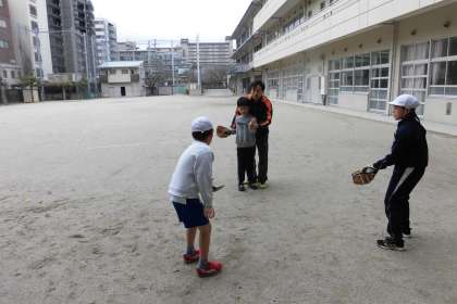 先週いただいた大谷選手のグローブで、キャッチボールをしてみました。グルーブをはめるのが初めての子も、野球部でいつも投げている子も、楽しい体験ができました。大谷選手、ありがとうございます!