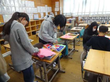 にじプロ3 作品展に向けて、「みんなから絵を募集して、開催式で見せたいな」「それぞれの学年でしているにじプロ3の取組をクイズにしてみようかな」など学校全体でつながるための活動を委員会で考え、取り組んでいます。