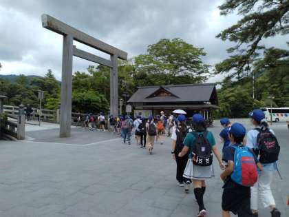 時間通りに伊勢神宮に到着です。担当になった人が代表でお参りをしました。みんなどんなお願いをしたのかな?