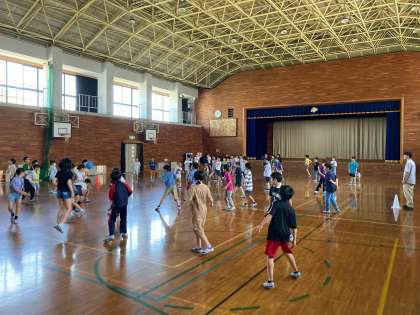 学年集会で「もっと学年で仲良くなりたい!」という意見が出てきたので、早速、中間休みに「ドッジボール大会」をしました。遊び係が考えた、ボールとドッジビーを混ぜた特別ルールでしたところ、スリル満点の試合となりました。結果は、2組の圧勝。1組では、「悔しいのでリベンジしたい!」「今度はクラスを混ぜて、別の遊びでもいいなぁ〜」などの感想が出ていました。どちらのクラスも「勝敗に関わらず一緒に遊べて楽しかった」という声が多く、これからも学年全体で仲が深まることを願っています。