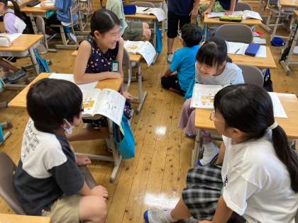 『お姉さんが家に帰ってきたら、弟のおもちゃや本が部屋中に散らかっていた』という場面で、お姉さんと弟それぞれの立場でどう言ったらいいかを考えました。役割演技を通して、お互いが納得できる対話に挑戦しました。振り返りでは、「相手の言葉や行動には理由があると考えることが大切」「立場が変わると考えも変わるため、想像力を働かせないといけない」などの意見が出ました。ぜひ、実生活でも生かしてほしいものです。