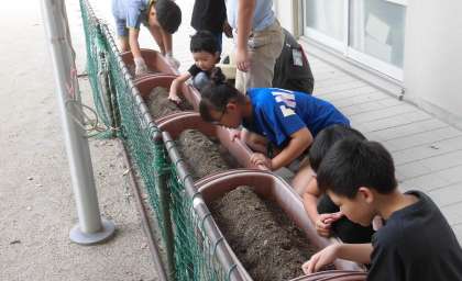 1学期は、ミニトマトやナスなどの沢山の夏野菜を育てて収穫しました。2学期は、大根を育てます。みんなでプランターの掃除をして、土を耕し、種をまきました。みんな真剣な様子で慎重に種をまいていました。