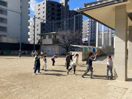 生活調べの結果、外遊びをしている子が少なかった4年生。寒い季節ですが、「外遊びで健康に!!」を合言葉に、有志の子が外遊びを企画してくれています。大縄、鬼ごっこ、だるまさんがころんだなど、誰にでも楽しめる遊びばかりです。日に日に遊ぶ人数が増えてきているのが嬉しいところです。