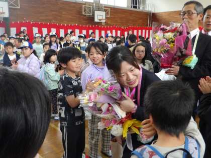 春は別れと出会いの季節。今日はたくさんの時間を共に過ごした教職員とのお別れです。春休みの中、たくさんの子ども達と、卒業生が集まりました。初めての小学校生活でお世話になった先生との別れがつらすぎて、涙する子ども達がたくさんいました。4月から始まるそれぞれの新しい生活に向けて、とても素敵な離任式となりました。