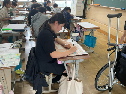 丁寧に下書きし、絵の具で着色をしています。それぞれの思いが詰まった素敵な作品に仕上がりそうです。