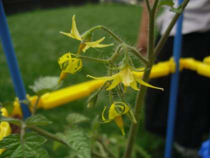 生活科で育てているミニトマトに黄色い花が咲きました。