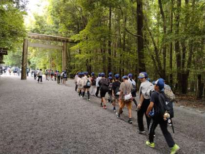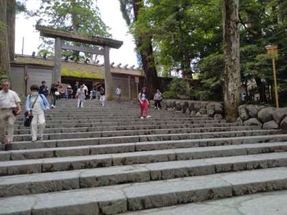 五十鈴川で手を洗い、代表がお参りに行きました。暑すぎず雨も降らず、いい感じの気候です。