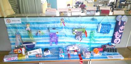 にじいろ学級の子どもたちは、図画工作科の時間が大好きで、それぞれの思いを豊かに表現しています。海の中に住む生き物たちが集合して、豪華な水族館ができあがりました。