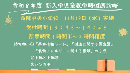 ❖10月中旬以降に、京都市教育委員会から各ご家庭に「新入学児童 就学時健康診断」の通知文等が送付されます。