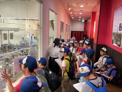 今日は、生八ツ橋の工場見学へ行きました。生地を折りたたむ繊細な作業を機械がしていることや、1グラム単位で重さを測って細かく検品していることを知り、丁寧なものづくりについて深く知ることができました。