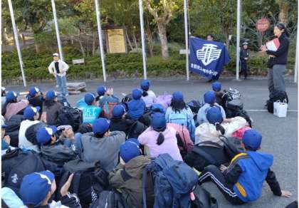楽しかった山の家も終わりです。退所式では、お世話になった所員の方々に、感謝と3日間で学んだことを代表が話しました。所員さんにお礼を言って、帰りのバスに向かいました。