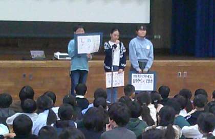 11月の全校集会を行いました。2学期も半分を過ぎ、学期初めに立てた行動目標を振り返り、残りの日々をどのように過ごすか考え、発表し合いました。6年生は、目標に向かって一人一人が頑張ることはもちろんですが、クラスや学校のみんなで声をかけ合って楽しく過ごせたり、よりよい学級・学校になるようにしていったりしたい思いを発表していました。
