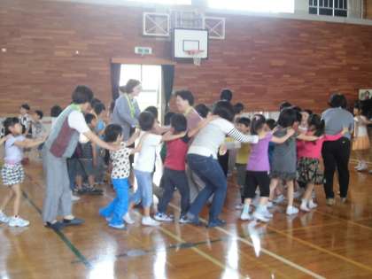 子どもたちは,ボランティアの方々に歌を披露し,一緒に貨物列車を楽しみました。
