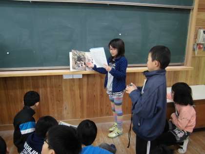 国語科では,グラフや写真を読み取り,すじ道立ててまとめ,友達に発表するという学習をしました。
