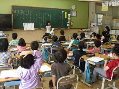 国語科『こまを楽しむ』で学習したことをもとに,自分たちで考えたこまの特徴を絵や言葉で上手に説明していました。聞き手側の子どもたちも自分の考えたものと比べながら聞くことができました。