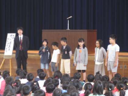 行動目標の振り返りでは,4年生がこの1カ月の間に気をつけてできたことを発表してくれました。