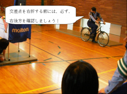 上京警察署の方たちが,自転車の乗り方や交通ルールなどをくわしく教えてくださいました。
