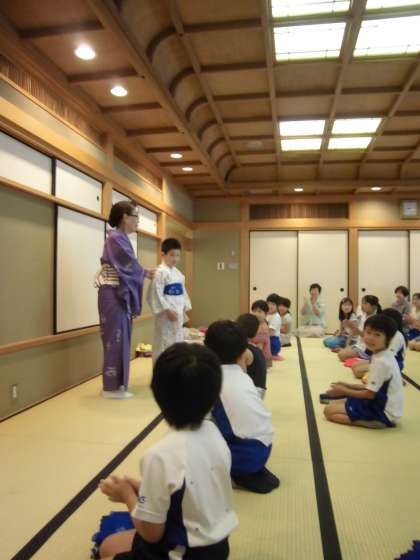 初めて一人でゆかたを着ることにどきどきの子どもたち。
