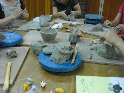 図書ボランティアさんにおはなしの世界を粘土で作っていただいて,