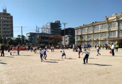 11月16日(日)に上京学区の小学校が集まり、二条城北小学校の運動場でドッジボール大会が行われました。快晴のもと、子どもたちは仲間と力を合わせてプレーしていました。勝ち負けはありますが、最後まであきらめず戦う姿がかっこよかったです。