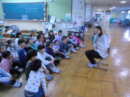 読書週間の取組の一つとして、各担任が別のクラスで読み聞かせをしました。どの先生が来るかな?というのも楽しみにしながら、いつもと違う雰囲気でおすすめの本を読んでもらいました。