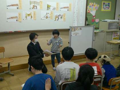 5日に、にじいろ学級の公開授業を通して、校内研究会を行いました。絵本を読んで、お気に入りの場面を紹介し合う学習でした。なぜ、その場面がお気に入りなのか理由を言ったり、自分だったらどうするかなど登場人物と重ねて考えたりしました。場面の様子を考えてしっかり音読することもできました。日頃の積み上げと一人一人の成長が感じられる1時間になりました。