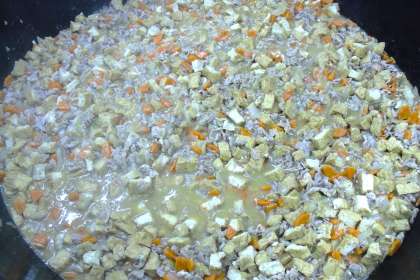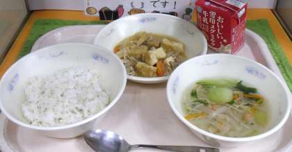 厚あげ、豚肉、たまねぎ、にんじんを赤みそとオイスターソース、一味とうがらしなどで味付けしました。コクのある味わいがごはんとよく合い、子どもたちは、「ごはんがすすむ!」「おいしい!」と大好評でした。