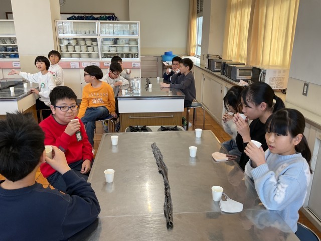 特に、昆布からとっただしと、昆布とかつおのだしを合わせただし、合せだしに塩などを加えただしを飲み比べた際には、「昆布はやさしい味がするね」「かつおの香りが加わった!」「合わせることでコクが増した!」といった声があがり、五感を使って味の違いを感じ取っている姿が印象的でした。
