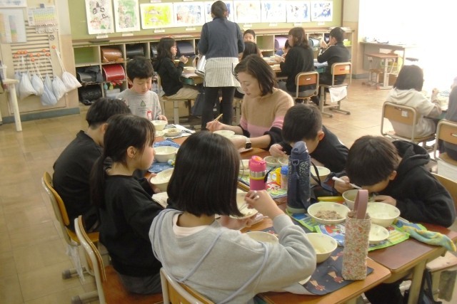おからは、1年生にとって「初めて食べた!」という子も多く、煮干しでとっただしのうま味がよく染み込んでいて、しっとりとした仕上りでした。