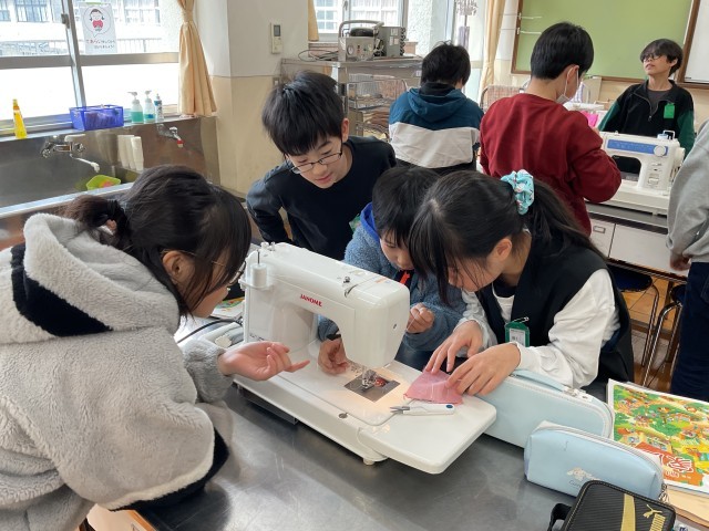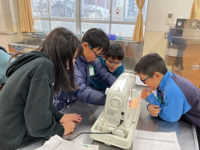 先週から、ミシンを使って学習をしています。上糸や下糸の準備をし、縫う練習をしました。班のみんなで声をかけ、手順を確認しながら縫うことができていました。真っ直ぐ縫うことができ、うれしそうにしていました。