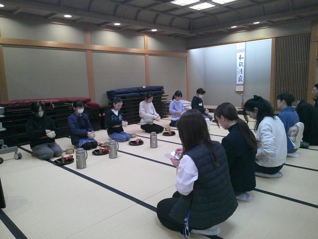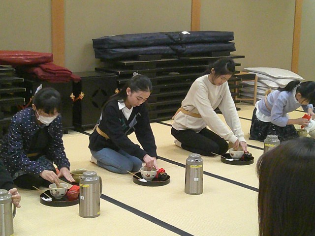 相手に失礼のないように念入りに準備し、一年間の感謝を込めてお茶を点てる。茶道の相手を思いやる心が詰まった時間になりました。