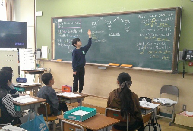 算数の学習で「速さの単位が違うときの計算の仕方について考えました。