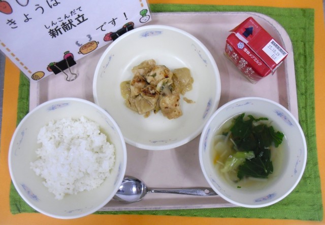 今月2品目の新献立は「鶏肉の中華みそ焼き」です。
