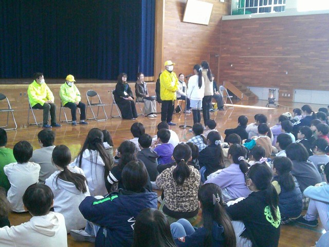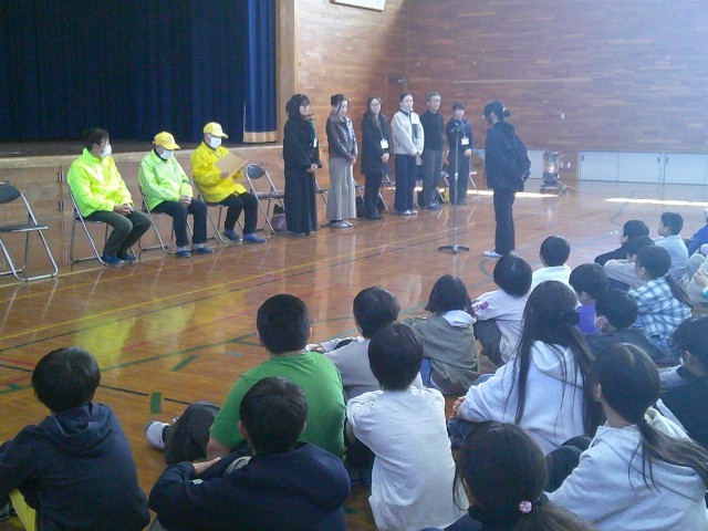 その後、見守り隊のから言葉をいただきました。その中で、以前よりあいさつする姿が良くなってきたというお話があり、うれしい気持ちになりました。