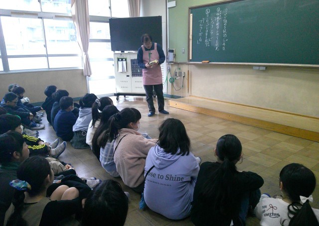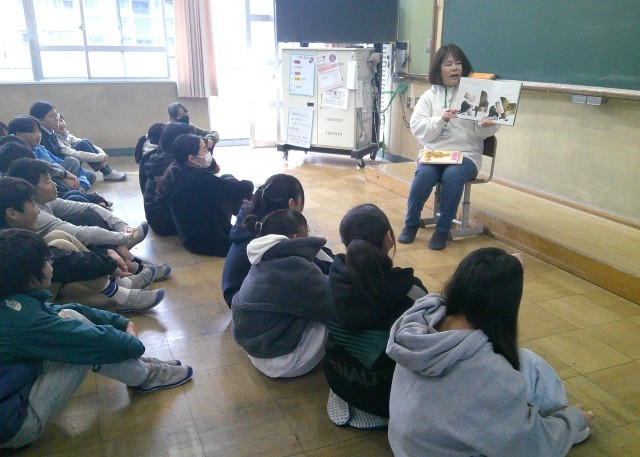 図書ボランティアさんによる月1回の朝の読み聞かせがありました。