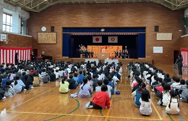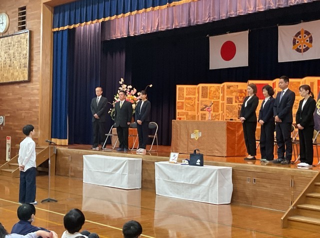 新しい教職員をお迎えした後、校長先生の話、そして、どきどきの担任発表でした。