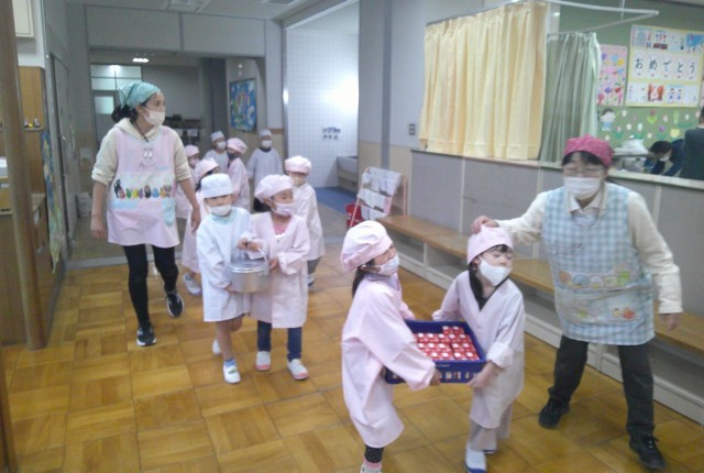 給食の時間には、給食当番さんが配膳をします。